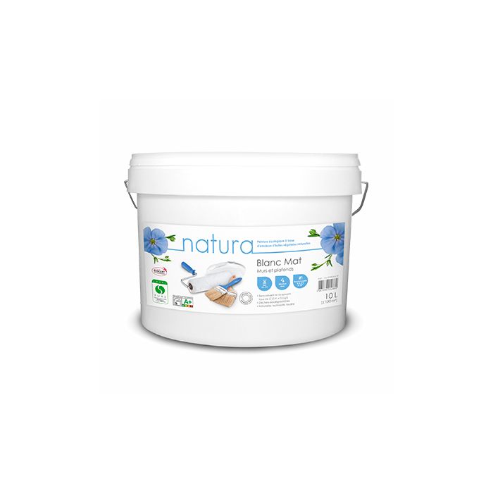 Peinture Natura , aspect mat pour murs et plafonds intérieurs : plâtre, papier à peindre...la peinture naturelle mat Natura s'applique au peinceau, rouleau ou pistolet.