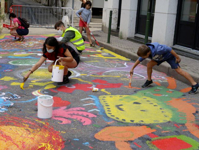 Cette peinture temporaire est daptée à toute expression artistique nécessitant une élimination non polluante des résidus sur goudron, béton ciment, bois... Délitescence naturelle de la peinture temporaire au gré des variations climatiques (alternances pluie/soleil) en 6 à 8 semaines environ.