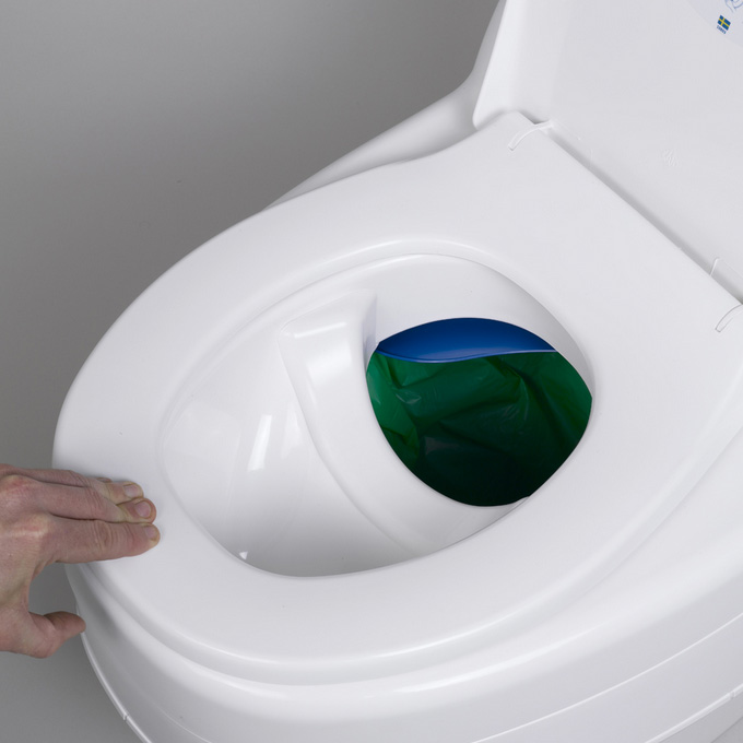 Contenu invisible dans la toilette sèche Separett Villa. La trappe s'ouvre uniquement si une persone est assise sur le toilette.